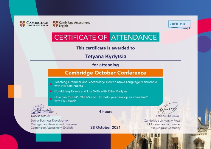 Моя інша велика пристрасть — переклад. Саме він дозволяє мені завжди залишатися в курсі мовних тенденцій, помічати, як англійська змінюється та «живе». Завдяки цьому мої студенти вчаться відчувати мову, говорити природно й сучасно, а не лише «правильно за підручником».